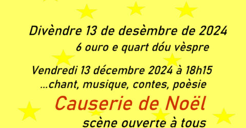 L’association Escolo Deis Agasso Galoio vous propose une séance spéciale le vendredi 13 décembre : chant, musique, danse, contes,...